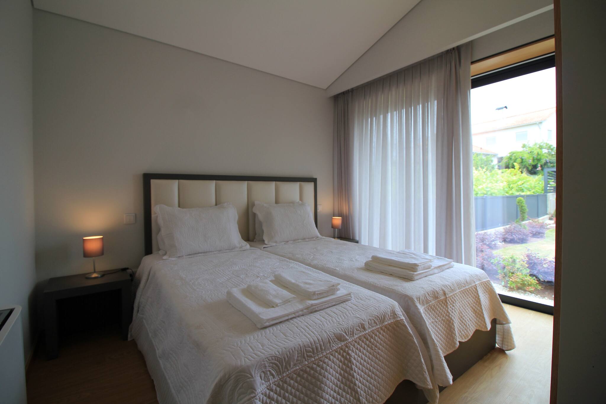 - no 1º Andar, encontrará as outras duas suites, ambas com duas camas de solteiro e casa de banho privativa. Uma das suites tem varanda sobre a zona da piscina, a outra tem saída direta para o jardim traseiro.
