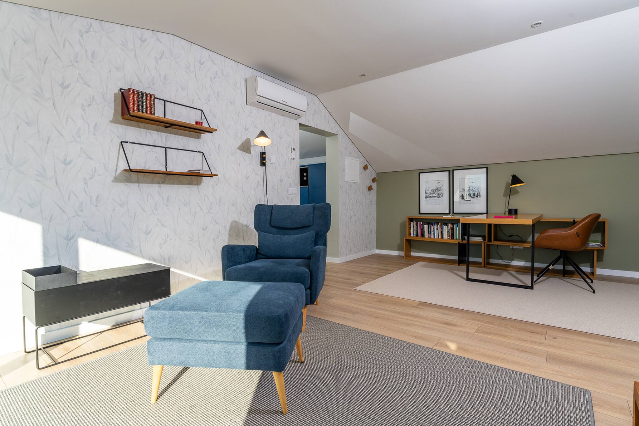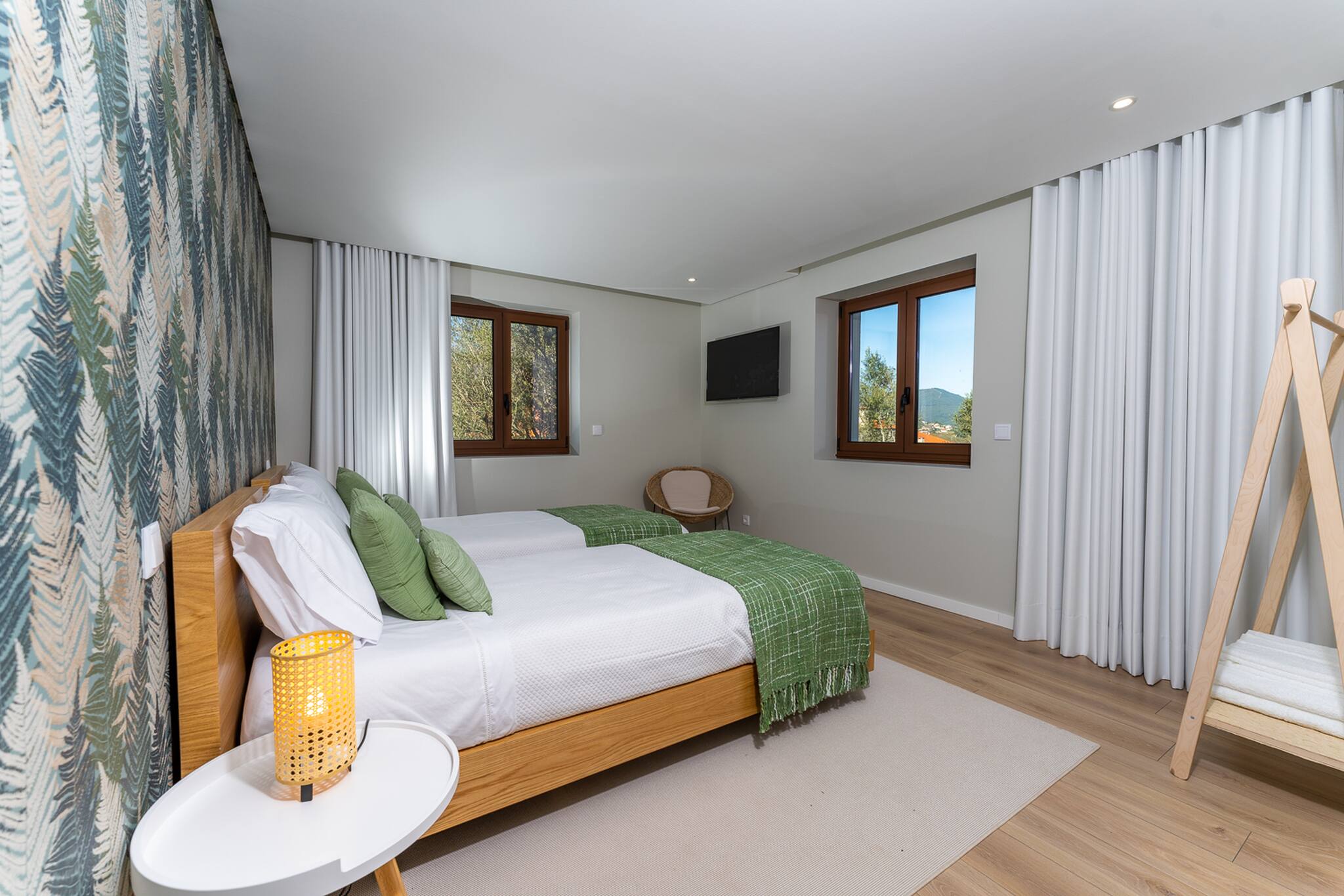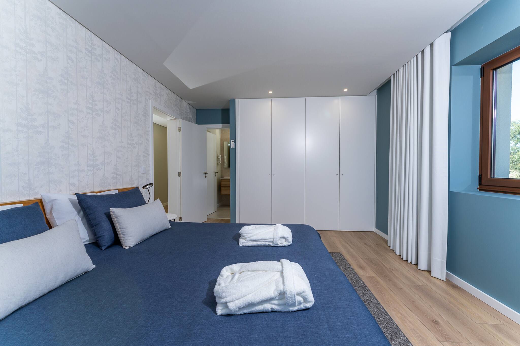 Os cinco quartos foram projetados para reproduzir o ambiente calmo de um hotel elegante, com móveis elegantes, casa de banho privativas e um esquemas de cores suaves que exalam estilo, elegância e uma sensação acolhedora de conforto. Nas amplas áreas de estar, peças igualmente elegantes destacam-se num cenário encantador de grandes janelas com vista para uma bela piscina e para a relva e arvoredo que a rodeia.