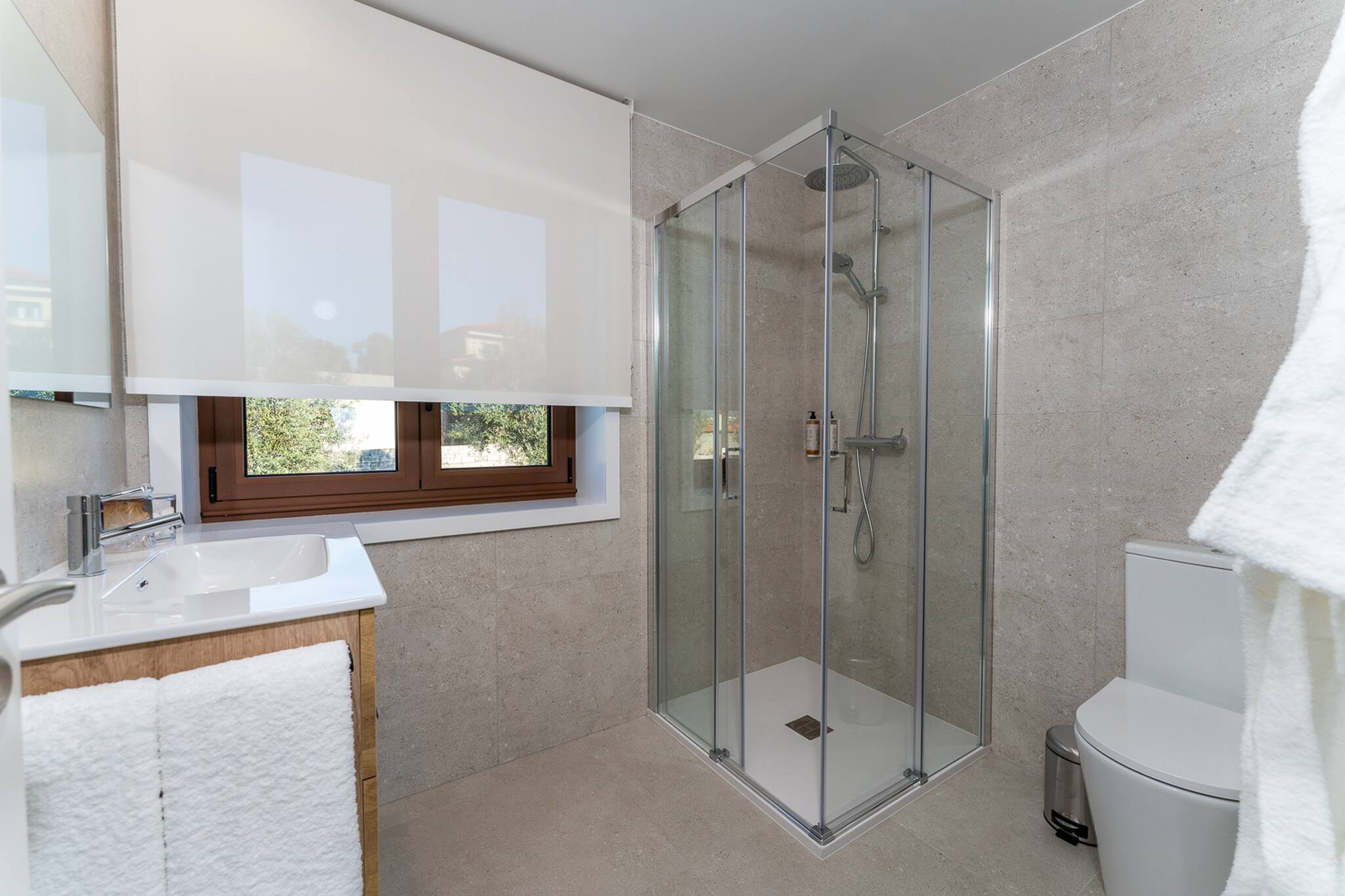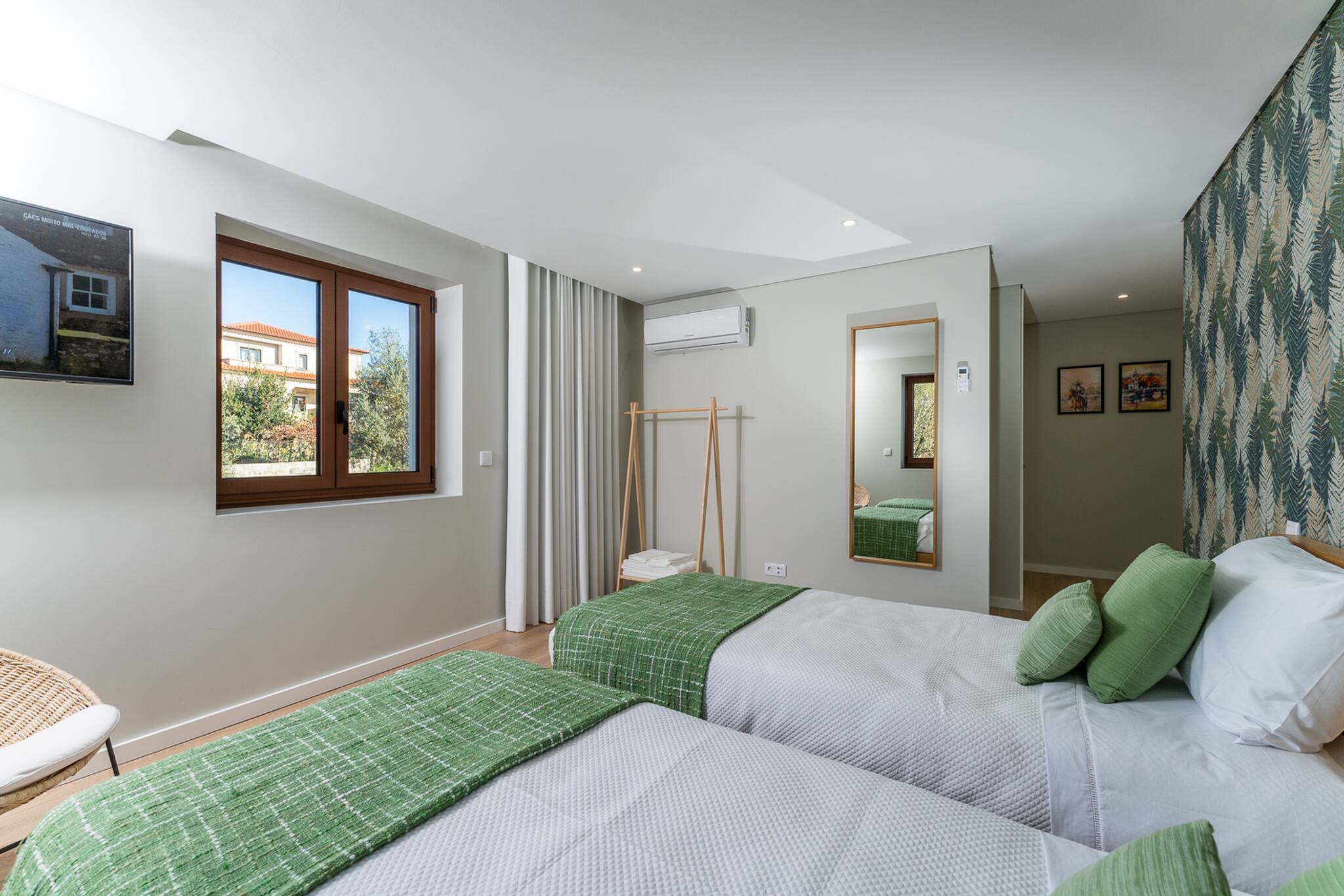 A casa dispõe de quatro quartos elegantemente decorados, cada um um refúgio de tranquilidade. As cinco casas de banho completas garantem privacidade e conveniência para todos os hóspedes. O coração da casa é o seu design em open space, onde a sala de estar, sala de jantar e cozinha totalmente equipada se fundem harmoniosamente, criando um ambiente perfeito para convívio e entretenimento. Para os mais novos, ou para acomodações extra, uma sala adicional com beliche oferece um espaço divertido e prático.