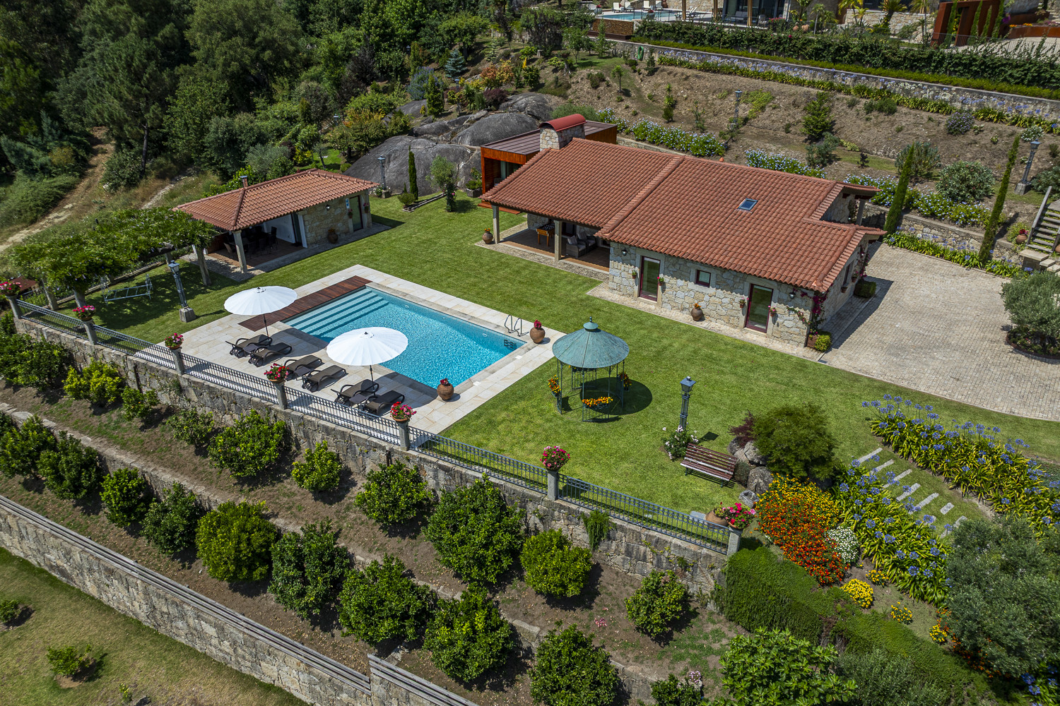 A piscina é um dos locais mais aprazíveis da casa por estar situada numa posição altaneira com vistas para o Vale do Lima onde se pode ver a ponte românica e o rio Lima. Rodeada pela frescura dos jardins e ao som da água da levada, os visitantes podem usar a churrasqueira exterior e realizar as suas refeições debaixo da pérgula de glicínias com vista sobre o vale.