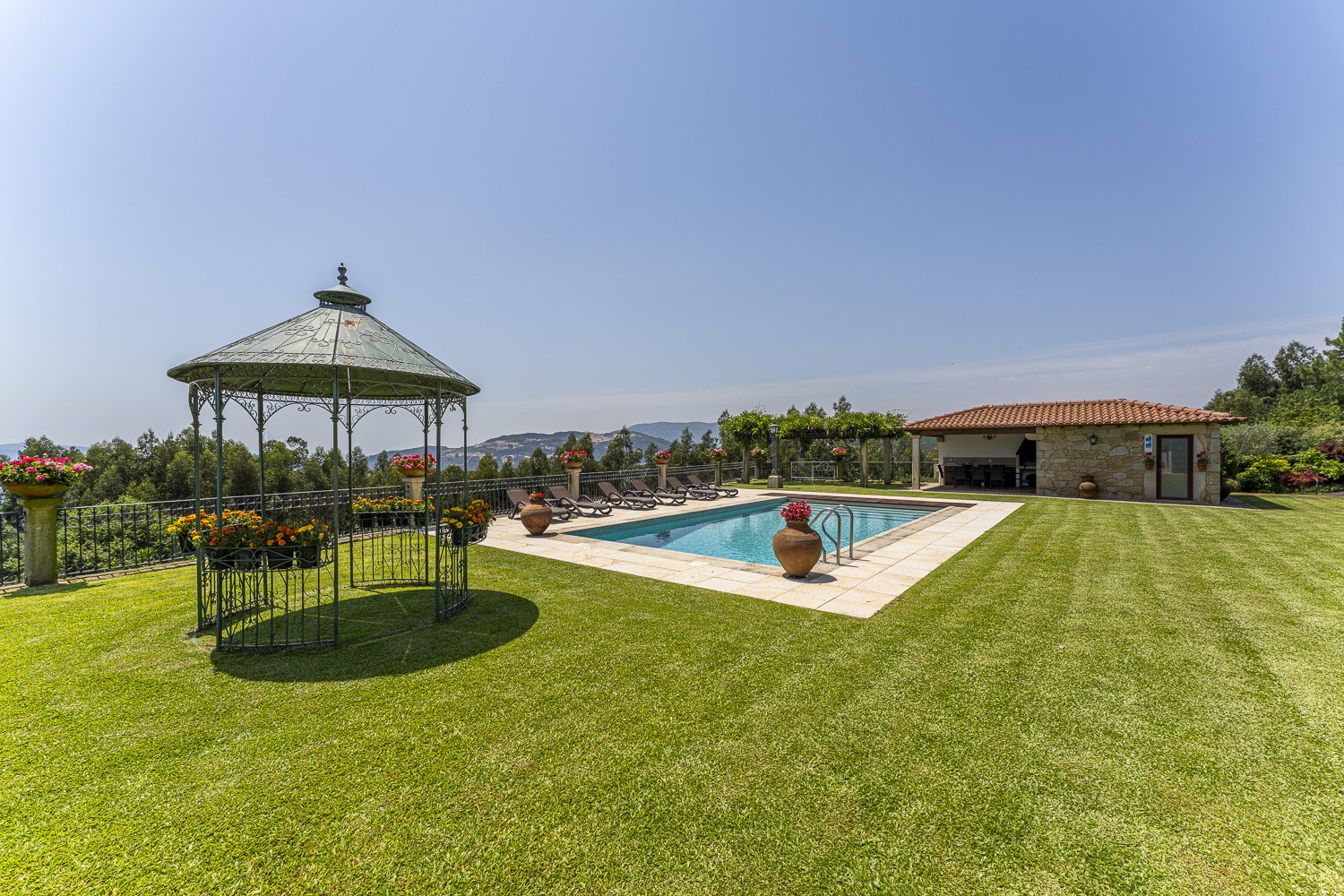 The swimming pool is one of the most pleasant areas of the house as it is situated in a high position with views over the Lima Valley where one can see the Romanesque bridge and the Lima River. Surrounded by the freshness of the gardens and to the sound of the levada water, visitors can use the outdoor barbecue and have their meals under the wisteria pergola with a view over the valley.