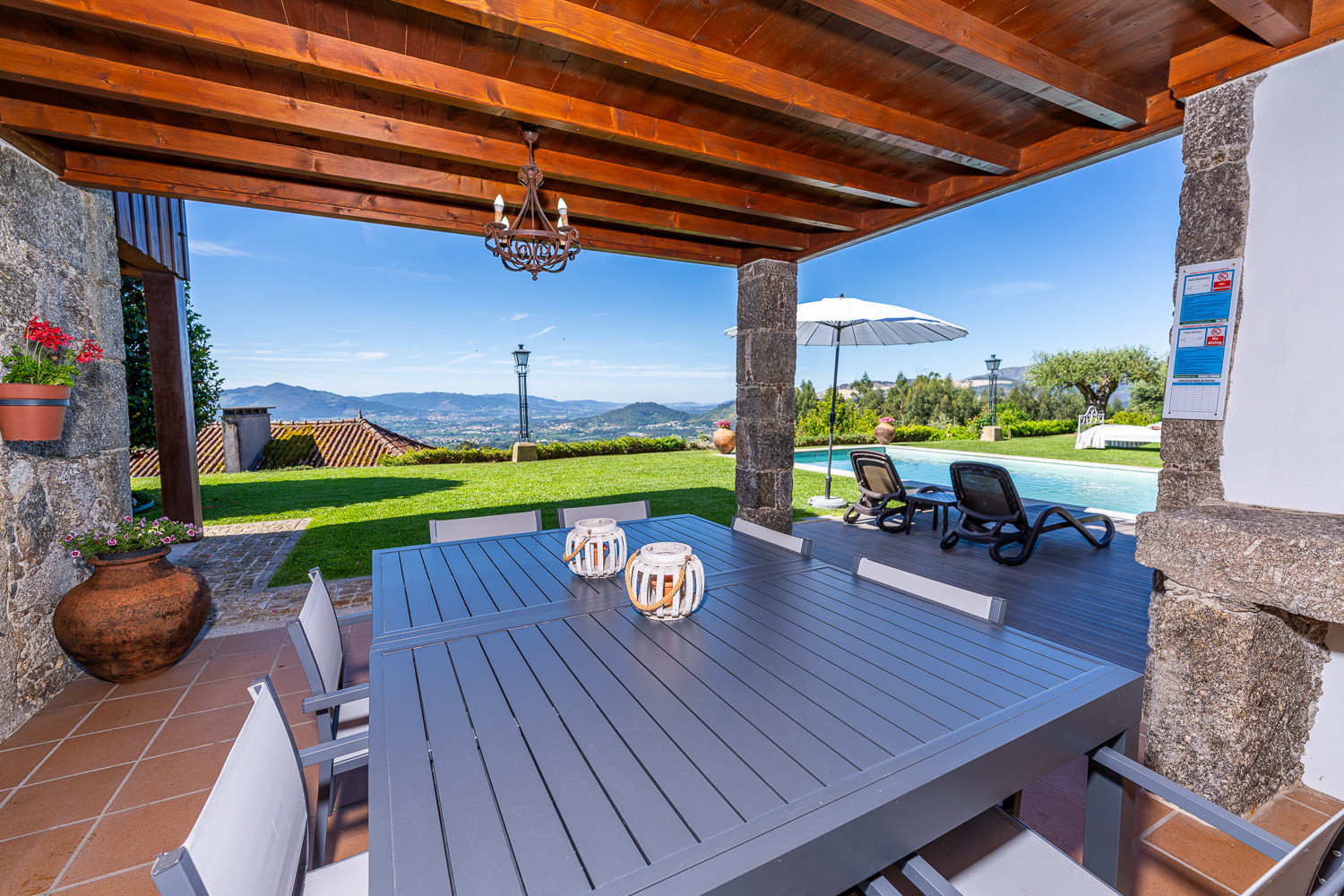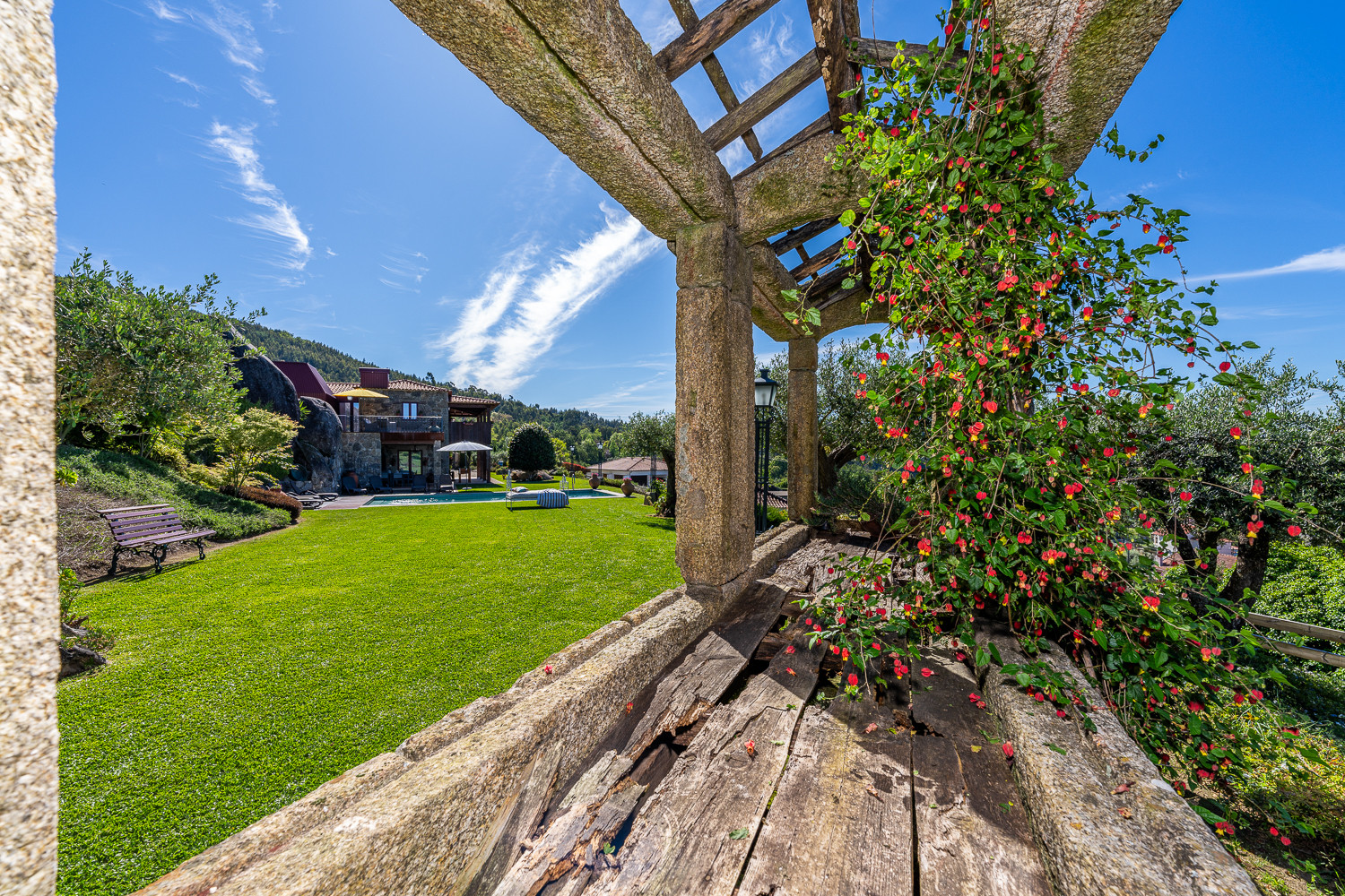 The swimming pool is one of the most pleasant areas of the house as it is situated in a high position with views over the Lima Valley where one can see the Romanesque bridge and the Lima River. Surrounded by the freshness of the gardens and to the sound of the levada water, visitors can use the outdoor barbecue and have their meals under the wisteria pergola with a view over the valley. -