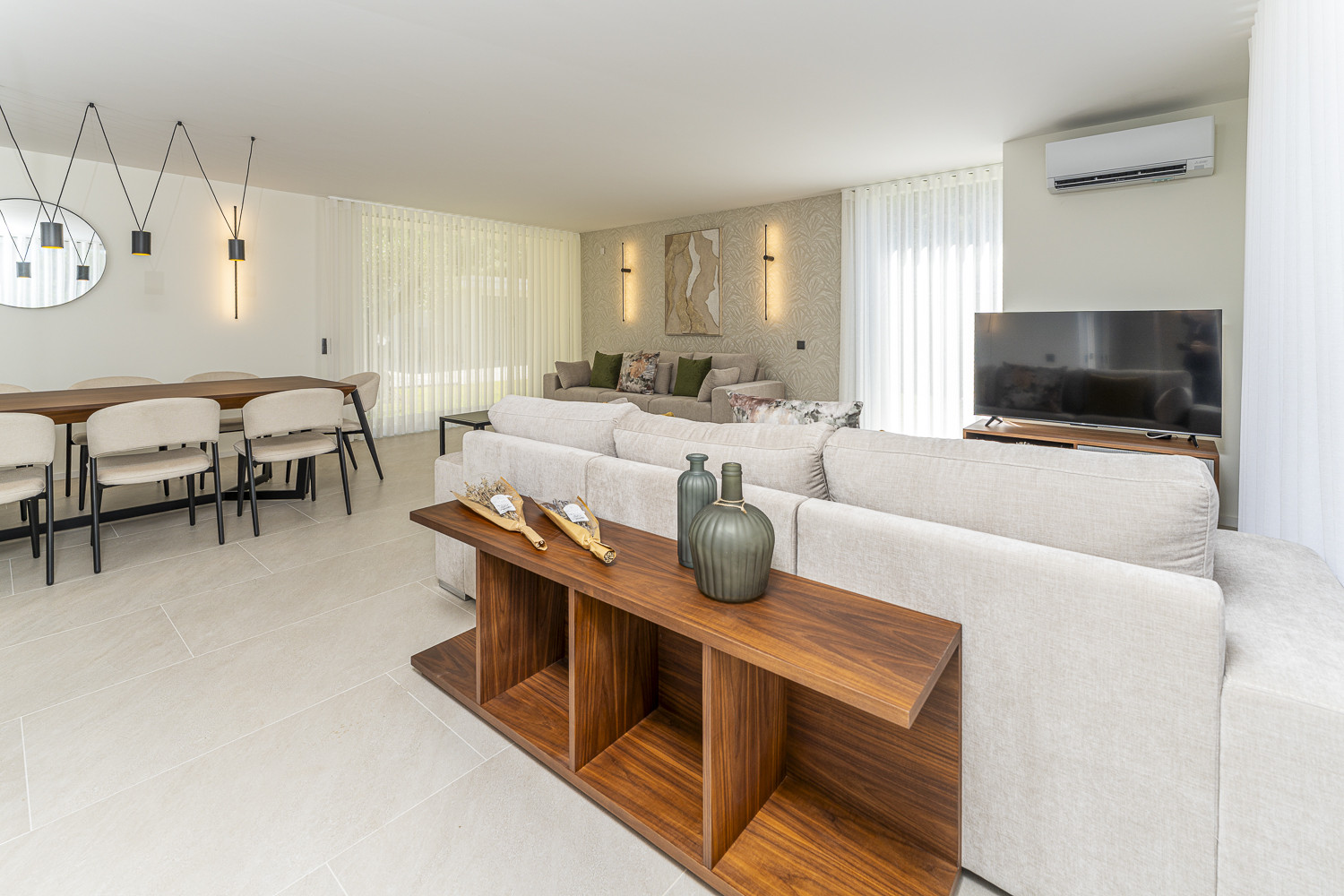 Dispone de jardín, parcela vallada, terraza, lavadora, barbacoa, aire acondicionado en todo el alojamiento, piscina privada, garaje en mismo edificio, Televisión, tv satelite.